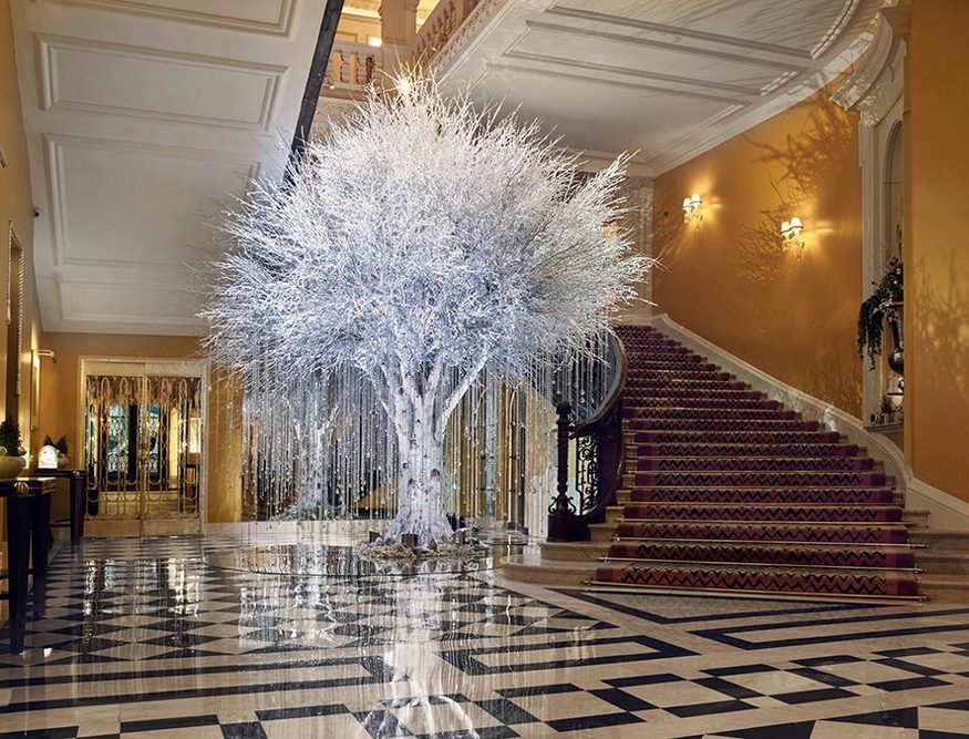 이외에도 눈을 사로잡은 트리로는 런던 클라리지 호텔에 있는 흰 트리다. 해당 트리는 흰 서리로 덮인 모습을 1만개의 수정과 유리 화환으로 표현했다.