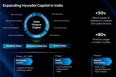 [더구루=정등용 기자] 현대캐피탈이 내년 2분기부터 단계적으로 인도에서 금융사업을 시작할 전망이다. 현대자동차가 오는 2030년까지 인도에서 26종의 신차를 출시하겠다고 밝힌 만큼, 현대캐피탈도 전속 금융사로서의 역할을 본격화 한다는 계획이다. 현대차 인도법인은 15일(현지시간) 인도 뭄바이에서 CEO(최고경영자) 인베스터 데이를 열고 현대캐피탈 인도법인과의 모빌리티·금융 생태계 강화 전략을 공개했다. 이에 따르면 현대캐피탈 인도법인은 내년 2분기부터 3단계에 걸쳐 금융사업을 전개한다. 1단계에서는 현대차 인도법인 딜러 네트워크의 유동성 강화를 위해 재고 금융 및 운전자본 솔루션을 출시한다. 이어 2단계에서는 고객에게 더 다양하고 유연한 소유 모델을 제공하기 위해 소매 대출과 리스, 렌탈 금융으로 서비스를 확장한다. 3단계에서는 구독형 서비스와 공유 모빌리티 금융 등 신규 모빌리티 상품을 도입한다. 행사에 참석한 호세 무뇨스 현대차 CEO는 “이는 단순한 대출이 아닌 지속 가능한 성장과 고객 유지 및 브랜드 신뢰 구축을 위한 것”이라며 “판매 금융은 잔존 가치를 높이고 브랜드 생태계를 강화한다”고 설명했다. 현대캐피탈 인도법인은 현재 경영 컨설팅만 제공하는