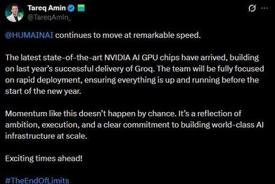 [더구루=홍성환 기자] 사우디아라비아 무함마드 빈 살만 왕세자가 주도해 설립한 AI 기업 휴메인이 엔비디아 AI 칩을 수령했다.
