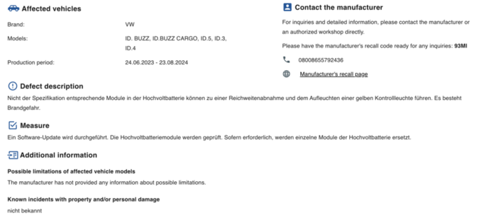 폭스바겐·쿠프라 리콜…ID·본 등 MEB 전기차 전반 포함 고전압 배터리 모듈 규격 미달…주행거리 저하·화재 위험 대응