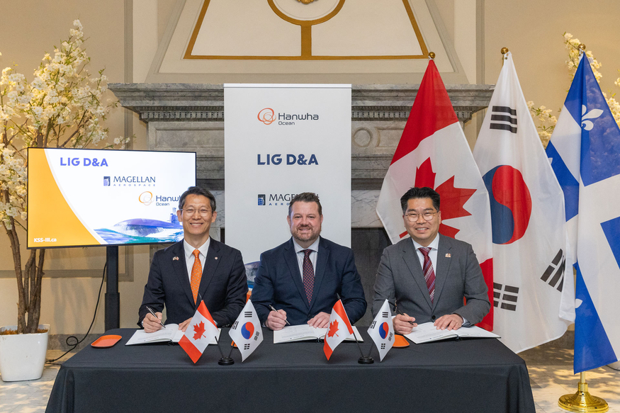 하이든 마틴(Haydn Martin) 마젤란 에어로스페이스 부사장은 "LIG D&A는 검증된 수중 무기 시스템 역량을 보유하고 있다"며 "이러한 기반 위에 파트너십을 구축함으로써 캐나다에 첨단 제조 및 유지·보수 역량을 확립하고, 핵심 역량을 국내로 이전해 장기적인 작전 준비 태세를 강화할 실질적인 기회를 창출할 수 있다"고 밝혔다.