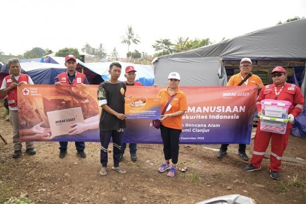 미래에셋 세쿠리타스 인도네시아는 27일 지진 피해를 입은 서자바주 치안주르 지역 주민들에게 비누, 샴푸, 치약, 칫솔, 수건 등 생활 필수품으로 구성된 위생 키트 250개를 전달했다고 밝혔다.
