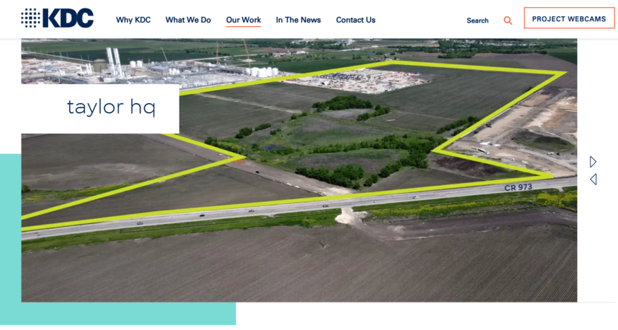 KDC는 자체 홈페이지에서 테일러를 개발 가능한 사이트 중 하나로 홍보해왔다. 삼성 반도체 공장과 인접해 인프라 이점을 누릴 수 있다고 설명했다. △삼성 공장을 위해 설치된 상하수도 시설을 이용할 수 있고 △중부 텍사스를 가로지는 FM 973과 CR 401 도로 진입이 용이하며 △1마일(약 1.6㎞) 이내 호텔과 레스토랑이 위치했다고 언급했다.