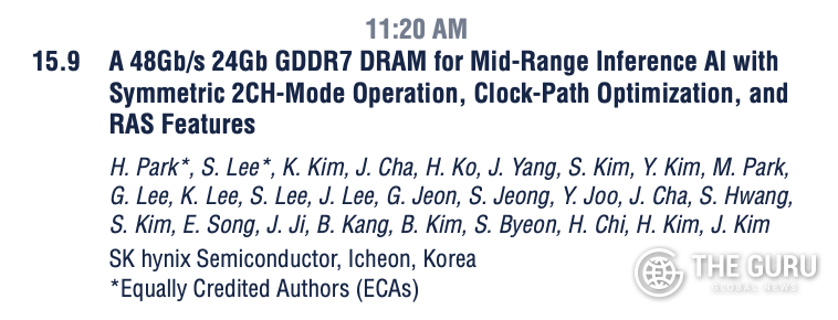 ISSCC 2026에서 GDDR7 관련 기술을 발표하는 주요 기업은 SK하이닉스가 유일하다. 48Gbps 속도의 신제품으로 GDDR7 D램 분야 기술 우위를 보여주고 글로벌 D램 경쟁자들을 따돌리려는 전략적 의도를 드러내는 행보로 풀이된다.