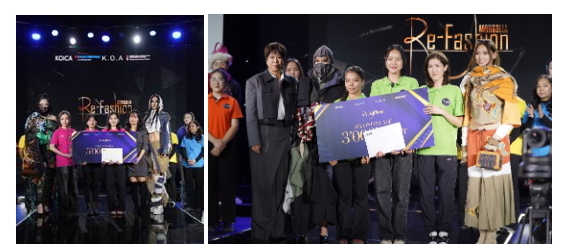 경연은 두 가지 주제로 진행됐다. 재단 후 남는 원단 조각을 최소화하고 남은 조각을 장식으로 재배치하는 제로 웨이스트 설계 방식의 ‘제로 웨이스트 인 캐주얼(Zero Waste in Casual)’과, 기존 의류 원단과 단추, 지퍼, 포켓 같은 부자재의 위치를 이동·재구성해 새로운 의상을 만드는 ‘베스트 디자인 오브 이매지네이션(Best Design of Imagination)’이라는 주제가 주어졌다. 참가 학생들은 코오롱FnC의 재고 의류와 몽골 내 빈티지 의류를 활용해 이틀 동안 주제별 1벌씩 총 2벌을 제작했다. 완성된 7개 팀의 업사이클 의상 14벌은 모델 착장과 함께 런웨이 방식으로 선보였으며 공개 심사로 평가됐다.