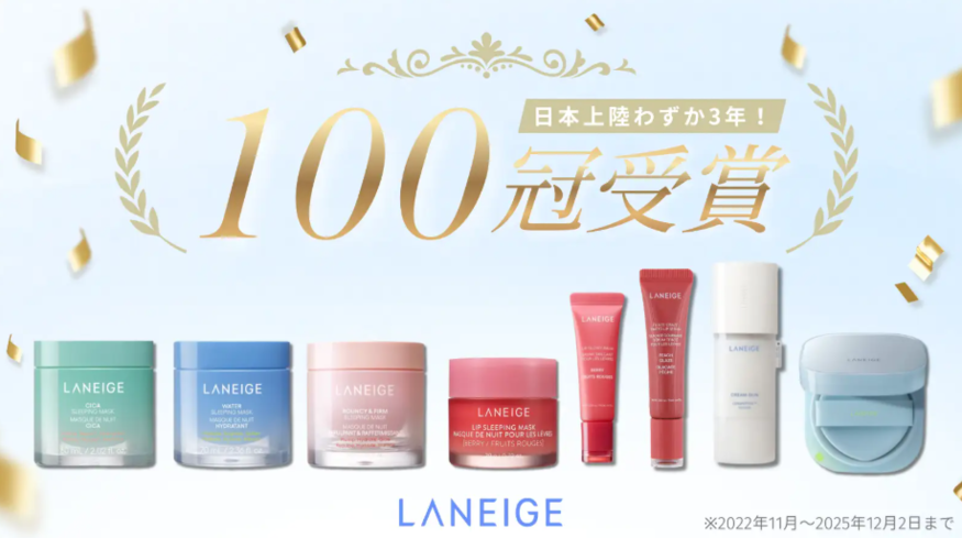 [더구루=진유진 기자] 아모레퍼시픽 글로벌 뷰티 브랜드 '라네즈(LANEIGE)'가 일본 시장에서 확실한 존재감을 드러냈다. 일본 상륙 3년 만에 주요 뷰티 어워즈 누적 100관왕을 달성하며 K-뷰티 대표 주자로 자리매김했다. 일시적 유행이 아닌, 제품력과 현지화 전략이 맞물린 성과라는 평가다.