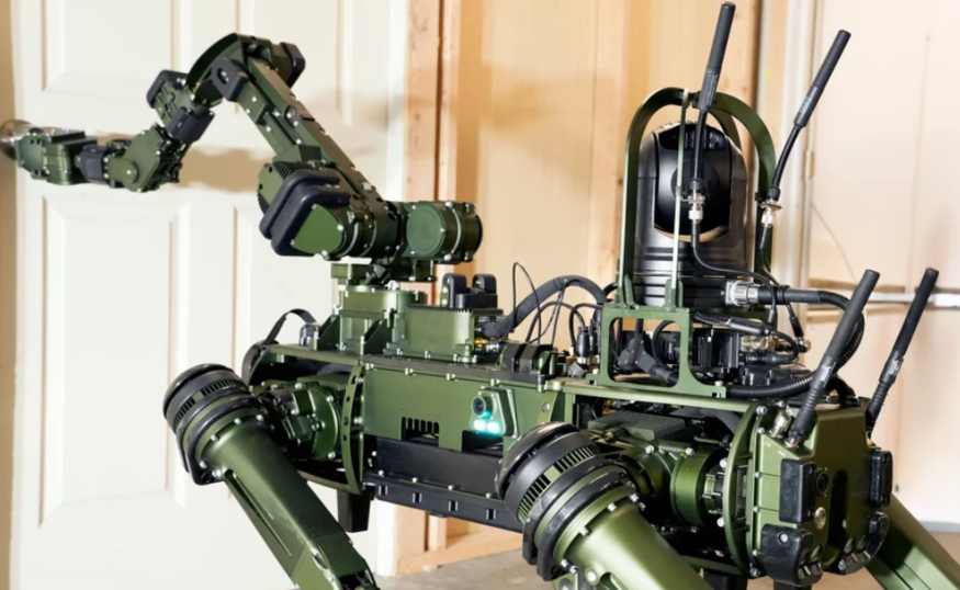 [더구루=오소영 기자] LIG넥스원의 자회사 고스트로보틱스가 사족보행 로봇 '비전60'과 통합할 '매니퓰레이터 암(Manipulator Arm, 로봇 팔에 해당하는 본체)을 선보였다. 로봇 상단에 부착해 다양한 임무를 수행하며 비전60의 활용성을 극대화했다.