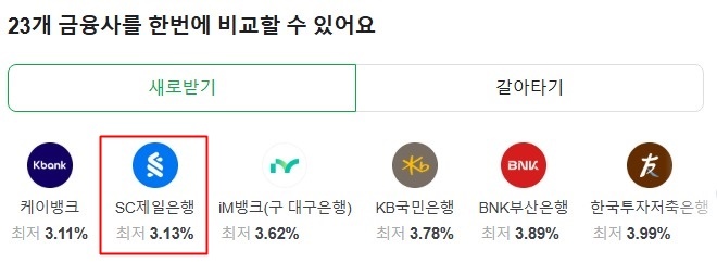 [더구루=정등용 기자] SC제일은행의 주택담보대출(주담대) 금리가 다시 도마 위에 올랐다. 금리 비교 플랫폼에서 3%대 초반 금리를 내세웠지만 실제 3%대 대출 비중은 '0'이었다. 또 다시 ‘미끼성 광고’란 비판을 피하기 어려워 보인다.