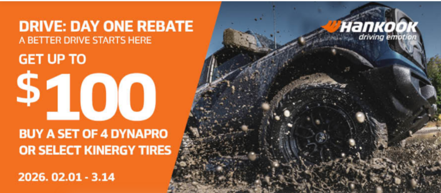 2일(현지시간) 한국타이어 미국 판매법인은 올해 첫 프로모션인 '2026 드라이브 데이 원 리베이트'(2026 Drive DAY ONE Rebate)를 시작했다고 밝혔다.