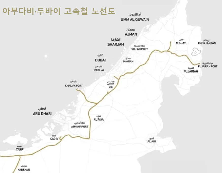 이번 사업은 총 사업비 80억 달러(약 10조6000억원) 규모의 초대형 프로젝트다. 아부다비 알 자히야와 두바이 알 자다프 사이 152km 구간을 시속 350km급 고속철로 연결하는 사업이다. 오는 2030년 개통을 목표로 하고 있다.