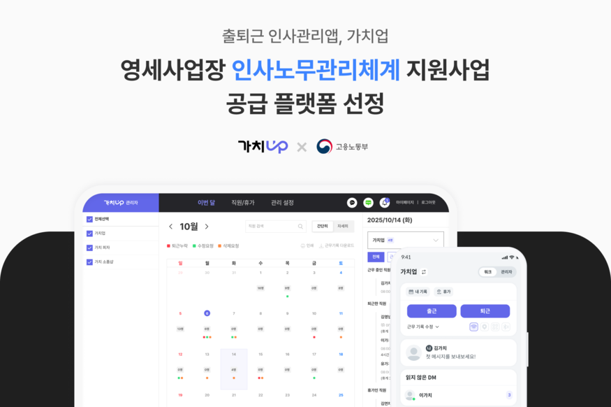 픽플레이는 출퇴근 인사관리앱 ‘가치업’이 고용노동부 주관 ‘영세사업장 인사노무관리체계 구축 지원 사업’의 공급 플랫폼으로 최종 선정됐다고 9일 밝혔다.