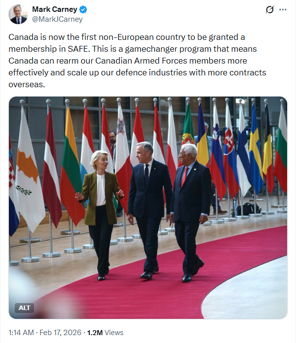 [더구루=길소연 기자] 캐나다가 비유럽 회원국 중 최초로 유럽연합(EU)의 무기 공동조달 대출 지원 프로그램인 '유럽안보행동(Security Action for Europe·SAFE) 참여하면서 한국의 가입 여부에 관심이 집중된다.