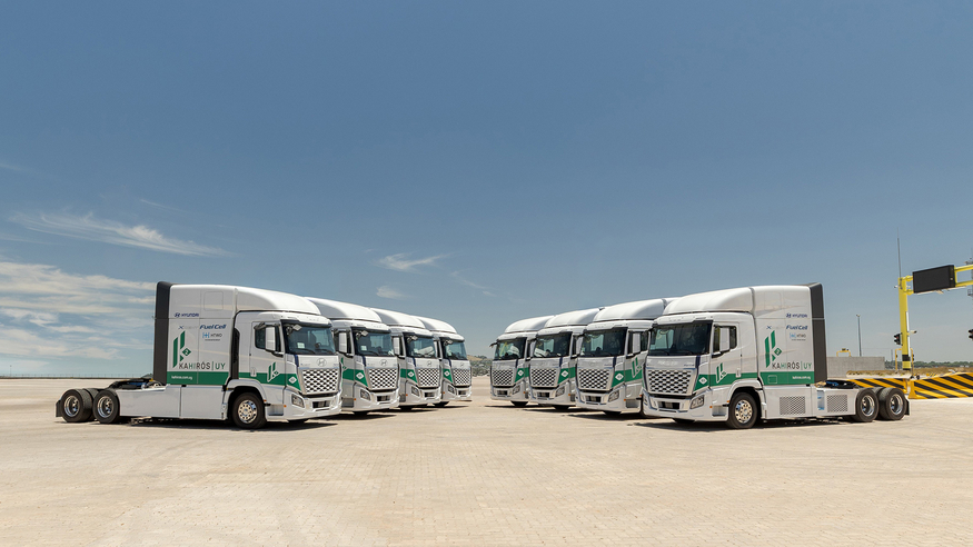 20일 현대자동차에 따르면 우루과이 수소 물류 프로젝트인 '카히로스(Kahirós)'에 참여해 대형 수소전기트럭 '엑시언트 수소연료전지(XCIENT Fuel Cell)' 8대를 본격적으로 운용한다. 불과 수개월 전 군산항에서 수출길에 올랐던 물량이 현지에 인도돼 실제 물류 현장에 전격 투입된 결과다.