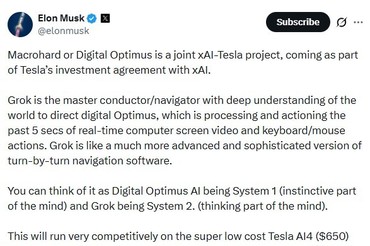 일론 머스크 "매크로하드는 테슬라·xAI의 공동 프로젝트…AI4 주축 가동"