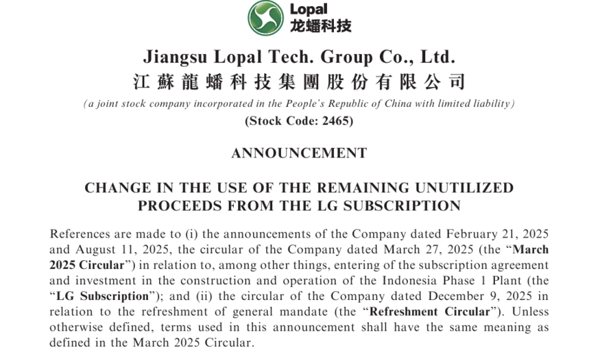 3일 중국 장쑤로팔테크(Jiangsu Lopal Tech. Group Co., Ltd, 이하 로팔테크)에 따르면 최근 이사회에서 LG에너지솔루션으로부터 수령한 지분 인수 대금의 재배정 안건을 의결했다.