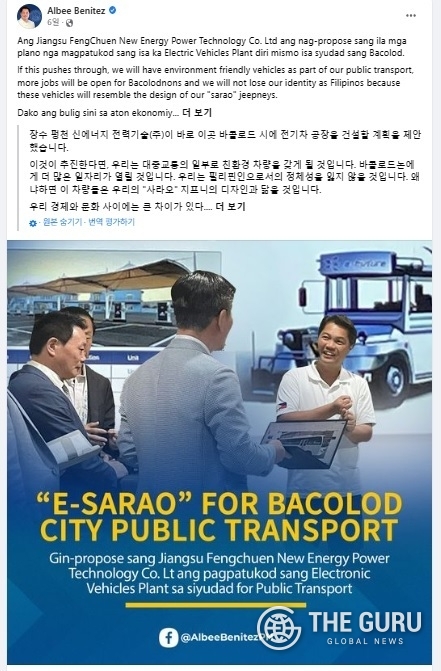 20일(현지시간) 필리핀 국영 통신사인 PNA(Philippine News Agency)에 따르면 알비 베니테즈(Albee Benitez) 바콜로드 시장은 "강소FC로부터 전기차 공장 건설을 위한 공식 제안서를 받았다"고 밝혔다. 이어 "양해각서(MOU) 초안 사본을 받아 검토하고 있다"며 "이 제안(전기차 공장 설립)을 논의하고자 오늘 밤 그들(강소FC)과 만날 예정이다"고 부연했다.