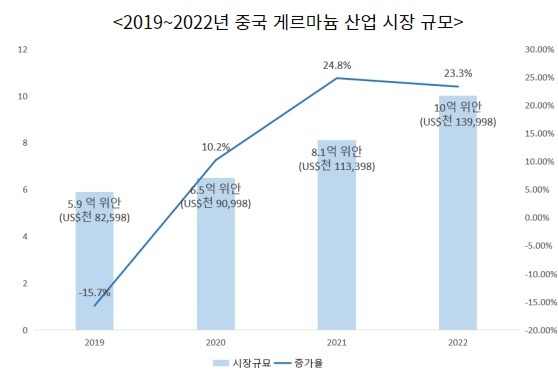 게르마늄의 응용 분야가 계속 확대 되면서 게르마늄에 대한 수요와 소비도 전반적으로 증가하는 추세다. 지난해 중국의 금속 게르마늄 시장 규모는 약 10억 위안(약 1800억원)으로 전년 대비 23% 성장했다.