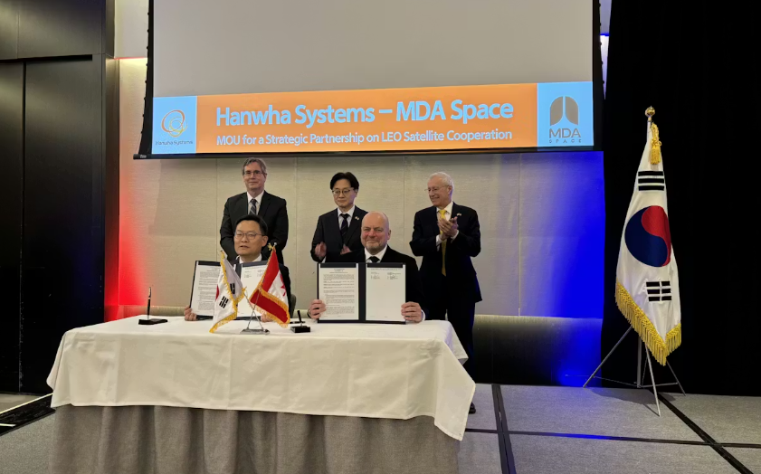 27일 텔레샛과 MDA스페이스에 따르면 한화시스템과 각각 양해각서(MOU)를 체결했다. 이번 MOU는 캐나다 토론토 파크 하얏트 호텔에서 열린 '한국-캐나다 산업협력 포럼'에서 서명된 6건의 MOU에 포함되며, K-LEO 사업에 협력하는 것을 골자로 한다.