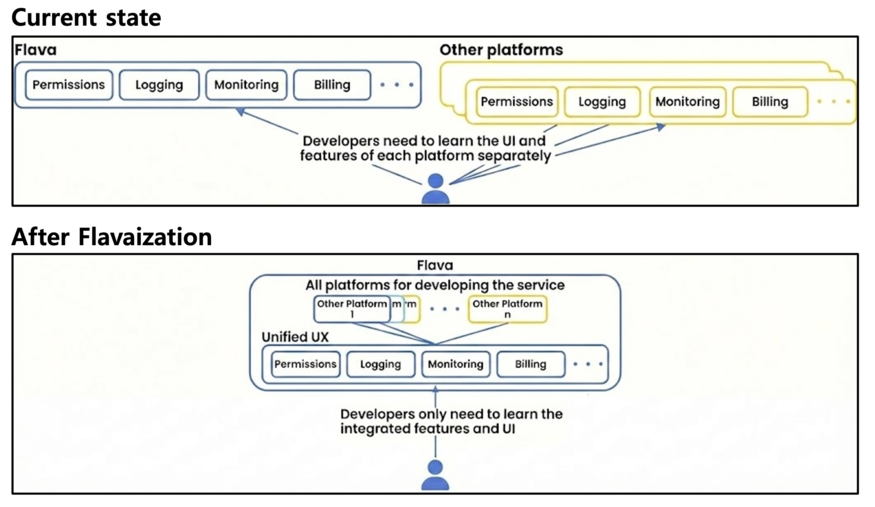 박영희 LY 클라우드 총괄본부장은 최근 공식 홈페이지를 통해서 플라바가 향후 어떻게 진화하게 될지를 소개했다. 박 본부장은 "플라바의 최우선적인 목표는 서비스 개발에 필요한 모든 플랫폼을 클라우드 형태로 제공하는 것"이라며 "모든 서비스를 플라바로 통합하는 것을 플라바이제이션이라고 부르고 있다"고 소개했다.