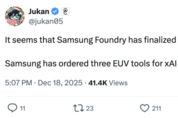 [더구루=정예린 기자] 삼성전자가 일론 머스크 테슬라 최고경영자(CEO)가 이끄는 인공지능(AI) 기업 'xAI'를 겨냥한 AI 칩 생산 준비에 들어간 정황이 포착됐다. 테슬라에 이어 xAI까지 고객군으로 편입할 경우 삼성전자는 '머스크 생태계' 전반을 아우르는 AI 반도체 파운드리(반도체 위탁생산) 입지를 강화하게 될 전망이다. 22일 IT 팁스터 '주칸로스레브(Jukanlosreve)'에 따르면 그는 최근 자신의 엑스(X·옛 트위터)에 "삼성 파운드리가 xAI와 계약을 체결한 것으로 보인다"며 "삼성은 미국 테일러 공장에 xAI용 극자외선(EUV) 장비 3대를 주문했다"고 밝혔다. xAI는 생성형 AI '그록(Grok)'의 추론 성능 고도화를 목표로 AI 전용 주문형반도체(ASIC) 개발을 추진해 왔으며, 이 과정에서 삼성전자 파운드리와 협의를 진행 중인 것으로 전해진 바 있다. 해당 프로젝트는 테이프아웃(설계를 완료해 생산으로 넘어가는 단계) 이전인 설계 단계 수준인 것으로 알려졌다. 삼성전자와 xAI 모두 계약 체결 여부를 공식적으로 확인하지는 않았지만, 주칸로스레브가 언급한 xAI용 EUV 장비 주문은 그간 진행돼 온 협의가 계약 단계로 진전됐을 가