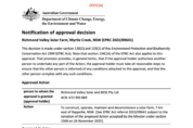 [더구루=정예린 기자] 고려아연의 호주 자회사 '아크에너지(Ark Energy)'가 추진하는 대규모 태양광·배터리 기반 에너지저장장치(BESS) 프로젝트가 당국 인허가 절차의 '최종 관문'을 통과하며 내년 첫 삽을 뜬다. 현지 재생에너지 사업이 또 한번 결실을 맺으며 친환경을 축으로 한 최윤범 회장의 '트로이카 드라이브'가 더욱 탄력을 받을 전망이다. 17일 호주 기후변화에너지환경수자원부(DCCEEW)에 따르면 DCCEEW는 최근 뉴사우스웨일스(NSW)주 머틀 크릭(Myrtle Creek) 인근에 조성되는 리치몬드 밸리 태양광·BESS 프로젝트에 대해 환경보호·생물다양성보전법(EPBC Act)에 따른 최종 승인 결정을 내렸다. 승인 대상은 태양광 발전소와 배터리 에너지저장장치의 건설·운영·유지·해체 전 과정이며, 추가 조건은 부과되지 않았다. 이번 승인으로 리치몬드 밸리 프로젝트는 주정부와 연방정부의 핵심 인허가 절차를 모두 확보했다. 당국 허가를 토대로 내년 초 착공할 것으로 보인다. 오는 2027년 하반기 상업 운전에 돌입한다는 목표다. 아크에너지는 앞서 뉴사우스웨일스(NSW) 주정부로부터 435MW 규모 태양광 발전소와 475MW·3148MWh 규모 B