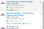 [더구루=정현준 기자] 넥센타이어가 유럽에서 마케팅·물류·인사 등 핵심 직군 채용을 확대하고 있다. 전체 매출의 40% 이상을 차지하는 유럽 시장에서 사업 확장 흐름에 맞춘 전력 보강 조치로 해석된다. 20일 링크드인에 따르면 넥센타이어 유럽판매법인은 최근 독일 켈크하임(Kelkheim) 지점 신규 인력 모집에 나섰다. 모집 분야는 △마케팅 전문가(커뮤니케이션·경험·제품 담당) △신차용 타이어(OE) 물류 주니어 △인사 부문 부매니저 △주요 고객사 담당자 등 4개 직군이다. 켈크하임 지점 측은 "유럽연합(EU) 브랜드 전략팀을 조속히 보강할 계획"이라고 밝혔다. 마케팅 직군은 유럽 지역 커뮤니케이션 전략 수립, 전시·출시 행사 등 체험 마케팅 운영, 제품 출시 프로젝트 관리, 자동차 전문 매체 대응 등의 역할을 맡는다. 물류 직군은 재고 관리 및 입고 모니터링을 담당하며, 인사 직군은 관련 분야 실무 경력을 요구한다. 넥센타이어의 유럽 본사는 독일 프랑크푸르트에 있으며, 생산 거점은 체코 자테츠 공장이다. 자테츠 2공장은 지난 2024년 하반기부터 가동률을 단계적으로 높여 지난해 약 60% 수준에 도달한 것으로 전해졌다. 회사는 올해 수요 회복세에 맞춰 최대