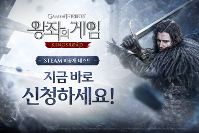 ◇넷마블 '왕좌의 게임: 킹스로드', 스팀서 비공개 테스트 참가자 모집 넷마블은 글로벌 게임 플랫폼 스팀(Steam)에서 신작 액션 어드벤처 역할수행게임(RPG) '왕좌의 게임: 킹스로드'의 비공개 테스트에 참가할 이용자를 모집하고 있다. 왕좌의 게임: 킹스로드의 아시아 정식출시에 앞서 진행되는 이번 테스트는 오는 4월 23일까지 스팀 페이지를 통해 참가 신청 가능하다. 테스트는 4월 17일부터 24일까지 진행된다. 이용자들은 테스트 참여를 통해 고퀄리티의 오픈월드 액션 RPG로 구현된 왕좌의 게임 세계관은 물론, 회피와 방어를 통해 적의 공격을 무력화시키고 패링으로 반격하는 손맛이 극대화된 액션, 두 가지의 무기를 실시간으로 교체하며 싸우는 전략적인 전투 등을 경험할 수 있다. 한편 넷마블은 지난 2월 24일부터 왕좌의 게임: 킹스로드의 사전등록을 진행 중이다. PC 사전등록을 진행한 이용자에게 '북부 의상' 코스튬 1종을 비롯해 '비약 선택 꾸러미' 10개, '나이트워치의 보급품 상자' 5개 등을 보상으로 지급하며, 구글 플레이스토어와 애플 앱스토어를 통해 사전등록에 참여한 이용자들에게는 프로필 테두리와 배경 꾸미기 아이템 각 1종과 외형 변경권 1개를