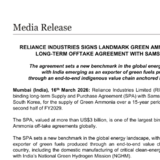 • [단독] 삼성물산·릴라이언스 '4.5조 규모' 암모니아 장기 공급 대형 계약