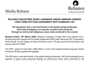 • [단독] 삼성물산·릴라이언스 '4.5조 규모' 암모니아 장기 공급 대형 계약