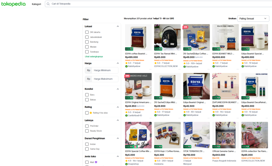 [더구루=진유진 기자] 이디야커피가 인도네시아 최대 이커머스 플랫폼 '토코피디아(Tokopedia)'에 입점하며 동남아 영토 확장에 속도를 내고 있다. 세계 4위 인구 대국이자 동남아 최대 경제 규모를 자랑하는 인도네시아 내 K-커피 유통망을 본격화해 현지 소비자 접점을 넓히는 모습이다.