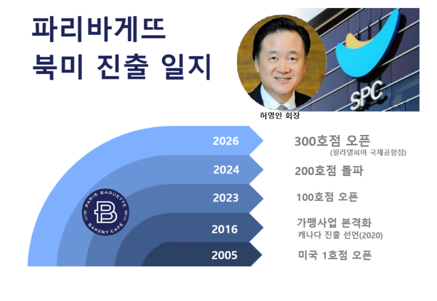 [더구루=진유진 기자] 허영인 SPC그룹 회장의 ‘글로벌 뚝심’이 마침내 북미 시장 진출의 상징적 고지인 ‘300호점’ 깃발을 꽂았다. 파리바게뜨가 미국 동부의 주요 관문인 필라델피아 국제공항(PHL)에 입점하며 영토 확장에 정점을 찍었다.