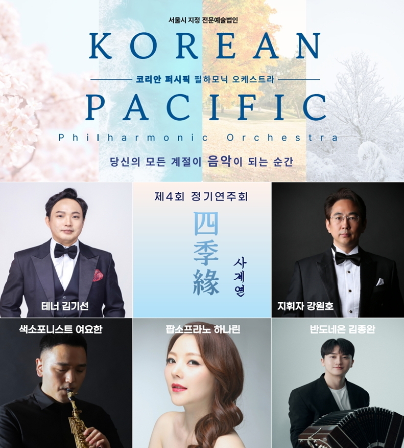 30일 코리안퍼시픽필하모닉에 따르면 다음달 9일 오후 5시 서울 강남구 광림아트센터 장천홀에서 제4회 정기연주회 ‘사계연(四季緣): 당신의 모든 계절이 음악이 되는 순간’을 개최한다.