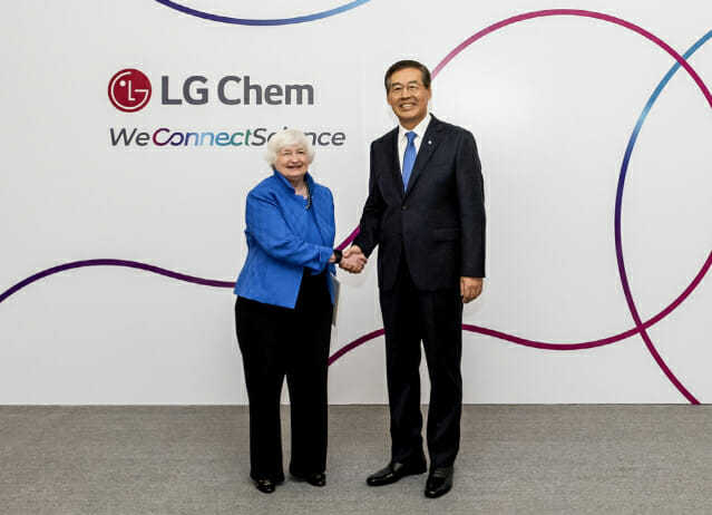 미국은 내 배터리 생산량을 늘리고자 주요 플레이어인 LG에도 적극적으로 구애하고 있다. 옐런 장관은 작년 7월 LG그룹의 연구개발 중심지인 LG사이언스파크를 찾아 배터리 기술을 둘러봤었다. 신학철 LG화학 부회장과 만나 협력 방안을 협의한 바 있다.