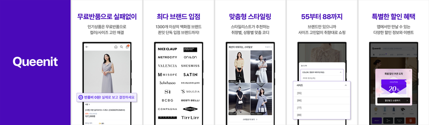 퀸잇은 4050 여성들에게 최적화된 사이즈의 퀄리티 높은 브랜드와 상품들만 모아서 보여주며, ‘3초 회원가입’부터 내 취향에 맞는 상품을 추천해주는 ‘AI 추천 시스템' 등 4050 고객들에게 편리한 쇼핑 환경을 제공하는 것이 특징이다.