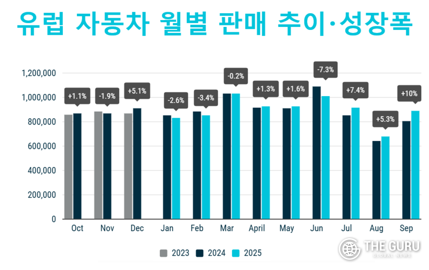 한편 올해 3분기까지 누적 유럽 자동차 시장 규모는 992만8527대로 집계됐다. 이는 전년(977만7143대) 대비 1.5% 성장한 수치이다. 순수전기차(BEV) 전체 수요는 179만6688대(점유율 16.1%)로 전년 동기(143만2787대) 보다 25.4% 증가했다.