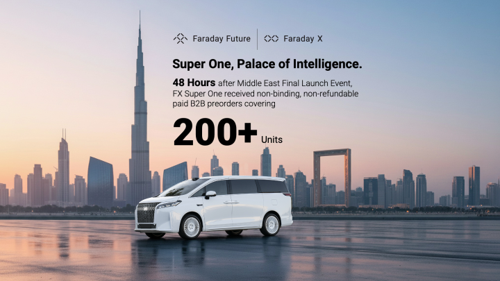 [더구루=홍성환 기자] '중국판 테슬라'로 불리는 전기차 제조업체 패러데이퓨처(Faraday Future)가 중동에서 200대 이상의 AI 구현형(EAI) 다목적 차량(MPV) 선주문을 확보했다.