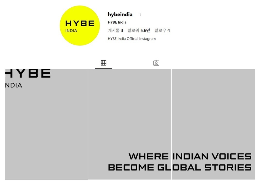 5일 업계에 따르면 하이브 인도법인(하이브 인디아)은 공식 인스타그램과 엑스(X, 옛 트위터) 채널을 오픈했다.