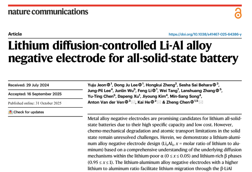 13일 네이처 커뮤니케이션즈에 따르면 LG에너지솔루션과 UCSD 연구팀은 빠른 속도로 충전하고 수명도 늘어난 전고체 배터리 연구 결과를 발표했다.