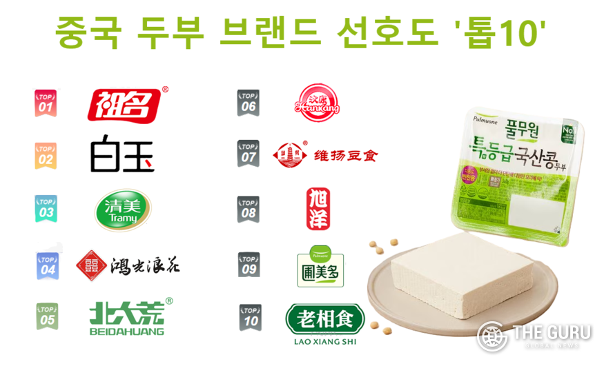 [더구루=진유진 기자] 풀무원이 중국에서 해외 기업 중 유일하게 올해 두부 브랜드 선호도 '톱10'에 올라 현지 식품 시장에서 경쟁력을 입증했다. 중국 경기 둔화 속에도 제품 다변화와 현지화 전략을 강화해온 점이 브랜드 가치 상승으로 이어졌다는 분석이다.
