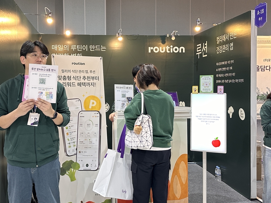 특히 눈길을 끈 것은 컬리가 지난 9월 출시한 건강관리 앱 '루션' 부스다. 루션은 인공지능(AI) 기반 개인 맞춤형 식단 추천과 컬리 연동 상품 교환 쿠폰, 리워드 기능 등을 제공하는 서비스다. 이용자가 음식 사진을 올리면 AI가 이를 파악해 칼로리, 탄수화물, 단백질, 지방 비중을 계산해준다.