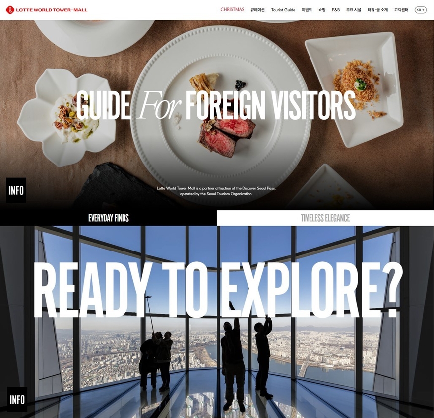 롯데물산은 롯데월드타워·몰 공식 웹사이트를 개편하며, 다양한 콘텐츠와 즐길 거리를 보다 쉽게 전달할 수 있도록 설계했다. 타워 이미지를 인터페이스의 일환으로 만들어 3D 상호작용을 통해 위치와 교통 수단별 접근 정보를 생동감 있으면서도 직관적으로 전달할 수 있도록 만들었다. 볼드한 이미지 중심 레이아웃과 간결한 폰트를 활용해 디자인 트렌드를 타지 않고, 몰입감 있는 비쥬얼을 제공한다.
