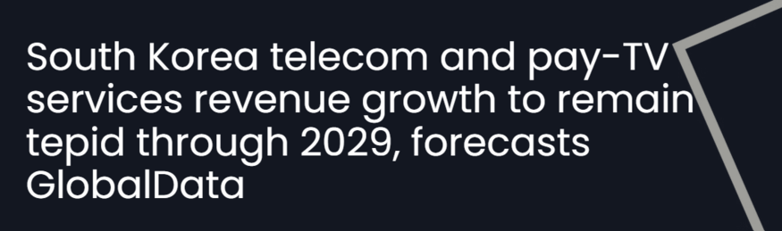 28일 글로벌 시장조사기관 글로벌데이터(GlobalData)가 발표한 ‘한국 통신 사업자 국가 지능 보고서’에 따르면 한국의 통신 및 유료방송 서비스 매출은 2024년 318억 달러에서 2029년 326억 달러(약 43조원)로 소폭 증가할 것으로 예측됐다. 이 기간 연평균 성장률(CAGR)은 단 0.5%에 그칠 전망이다.