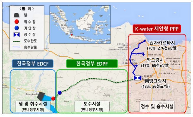 까리안 광역상수도 사업은 인니 물 분야 최초의 PF 사업이다. 사업비는 3000억원 규모다. 높은 지하수 의존도와 수질 문제로 어려움을 겪는 수도 자카르타와 인근 도시 약 200만명에게 하루 40만㎥ 수준의 깨끗하고 안전한 식수를 공급할 예정이다.