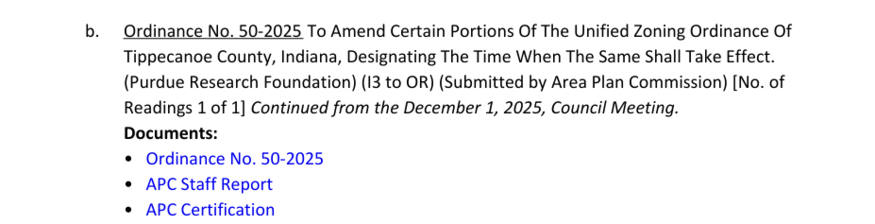 이 안건은 SK하이닉스의 공장 인근인 부지A(Site A)의 용도를 산업용(I3)에서 사무용(OR) 용지로 변경하는 내용을 담고 있다. 앞서 퍼듀연구재단(PRF)은 SK하이닉스의 투자 유치를 위해 자체 보유한 49만1693㎡ 규모 부지B(Site B)의 용도를 기존 저밀도 주거지(R1)에서 I3로 바꾸는 작업을 진행했다. 용도 변경에 대한 주민들의 동의를 얻어내고자 주거지와 더 가까운 부지A는 공장이 들어올 수 없도록 OR 용지로 바꿔주겠다고 약속했었다.
