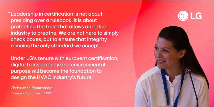 30일 LG전자에 따르면 크리스티아나 파파자하리우(Christianna Papazahariou) LG전자 유럽 HVAC 환경 및 규제 전략 총괄이 유로벤트 인증(Eurovent Certification)의 규정 준수 프로그램·정책 위원회(CPPC) 의장으로 최종 선출됐다. 이번 선출은 업계 관계자들의 만장일치 지지로 결정됐다.