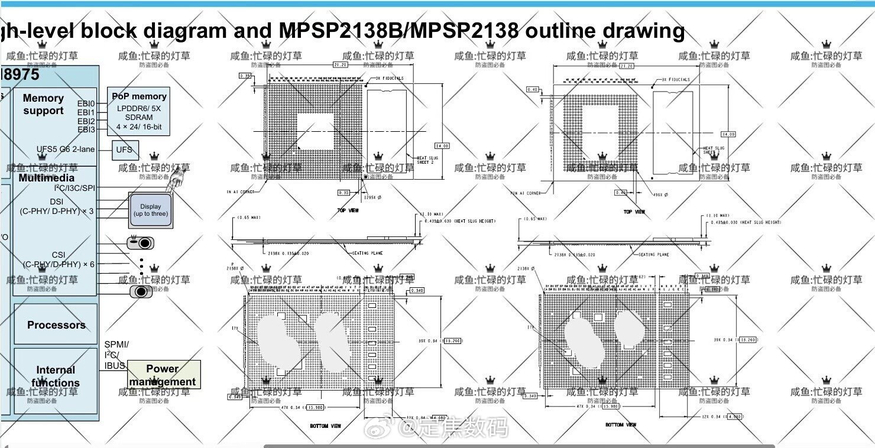 10일 중국 IT 전문 팁스터 '픽스드 포커스 디지털(Fixed Focus Digital)’에 따르면 최근 유출된 퀄컴 차세대 모바일 AP '스냅드래곤 8 엘리트 젠 6 프로' 패키지 설계 도면에 HPB 구조와 유사한 방열 설계가 반영된 것으로 나타났다. 도면에는 'SM8975'로 표기된 패키지 개요와 함께 칩 다이 상단에 '히트 슬러그 시트(Heat Slug Sheet)'가 배치된 구조가 표시돼 있으며, 방열 금속판이 칩 위에 직접 접촉하는 형태가 반영됐다.