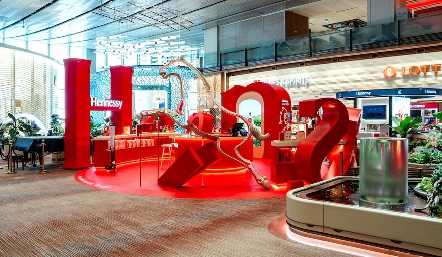 25일 롯데면세점에 따르면 모엣 헤네시 트래블 리테일과 함께 싱가포르 창이공항 제1터미널에서 '헤네시 팝업스토어'를 운영 중이다. 이번 팝업스토어는 올해 '불의 말의 해'를 콘셉트로 한 조형물을 중심으로 구성됐으며, 헤네시 V.S.O.P·X.O·파라디 등 리미티드 에디션 제품을 직접 체험할 수 있도록 설계됐다. 전용 칵테일, 시음 프로그램, 한정판 기프트 패키지 등 다양한 체험 요소를 결합해 브랜드 몰입도를 높이고 구매로 이어지는 소비 경험을 강화한 것이 특징이다.
