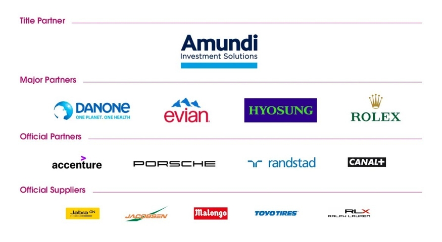 효성이 합류한 메이저 파트너는 대회 핵심 후원사다. 롤렉스와 다논, 에비앙 등이 이름을 올리고 있다. 이외에도 오피셜 파트너로는 미국 컨설팅 기업 액센추어, 독일 자동차 브랜드 포르쉐, 네덜란드 HR(Human Resources)기업 랜드스타드, 프랑스 미디어기업 카날 플러스 등이 활동하고 있다.