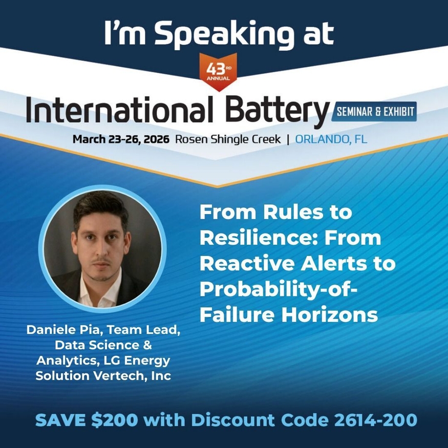 LG에너지솔루션 버테크는 데이터사이언스 전문가인 다니엘레 피아(Daniele Pia) 담당이 오는 24일 발표자로 연단에 선다. 'ESS를 위한 AI(AI for Energy Storage)'라는 주제로 AI 기술을 활용해 ESS의 성능과 신뢰성을 향상할 방안을 논의할 예정이다. 특히 안전성 강화에 AI가 중요한 역할을 할 수 있다. AI를 통해 확률에 기반해 미래를 예측함으로써 사고를 예방할 수 있어서다. 과거 특정 임계값에 도달했을 때 경고하는 사후 대응 방식에서 벗어나 사전 예측을 통해 안전성을 확보할 수 있다.