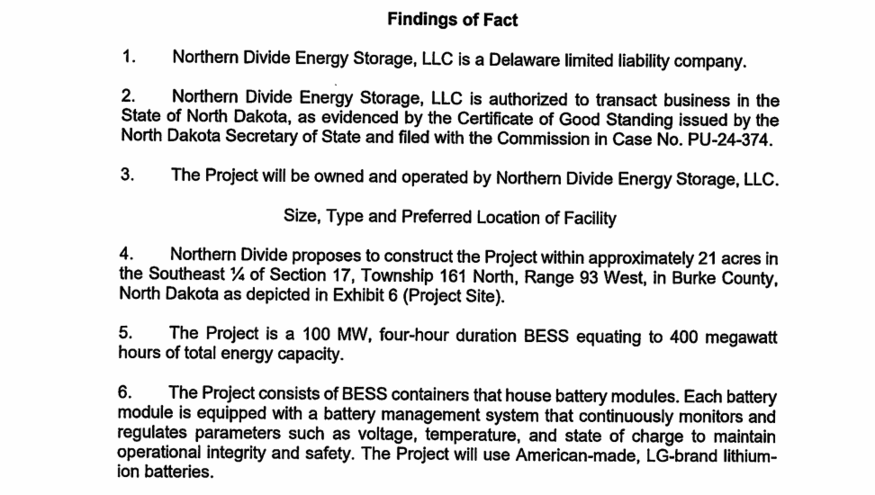 14일 노스다코타 주정부에 따르면 공공서비스위원회(PSC)는 디바이드 에너지 스토리지(Northern Divide Energy Storage, LLC)의 100㎿/400㎿h 규모 BESS 사업에 대해 부지 적합성을 승인했다. 이는 BESS 설치에 따른 환경·사회적 영향을 종합 검토한 결과 해당 부지가 알맞다고 판단했다는 의미다.
